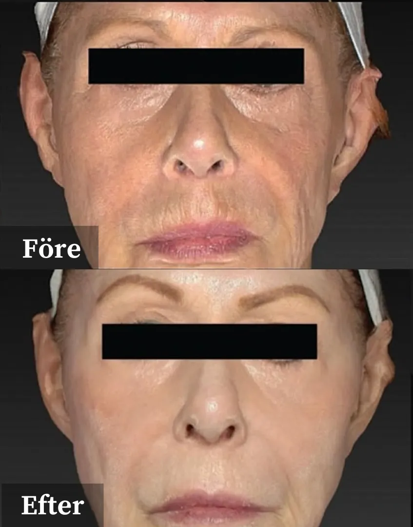 Behandlingen jämnar ut hudens struktur och ökar densiteten, vilket skapar ett mer lyft och förfinat intryck.
