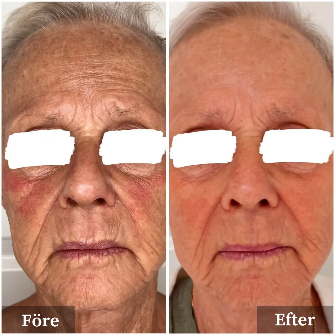 Tillfällig rodnad eller en lätt värmekänsla kan förekomma i det behandlade området. Detta lägger sig vanligtvis snabbt, och huden fortsätter sin naturliga förnyelse utan att störa din vardag.
